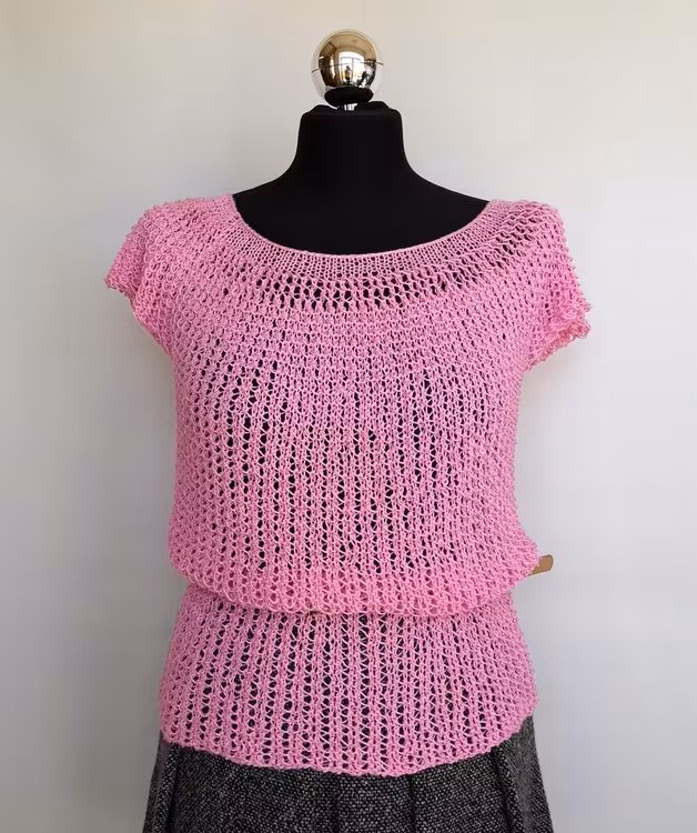 en topp stl M/L - garn: 150g, fg.194, stic.nr 4,5