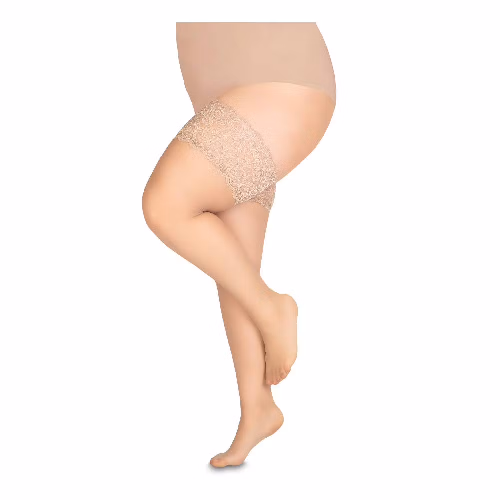 Ett par matt stay-ups med bred vacker spetskant längst upp.