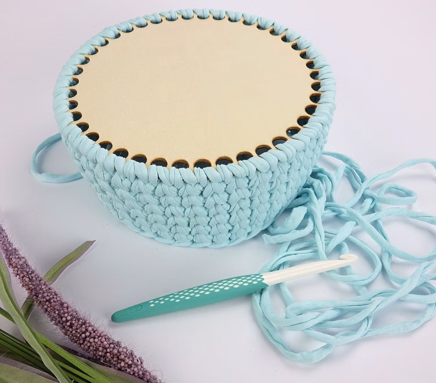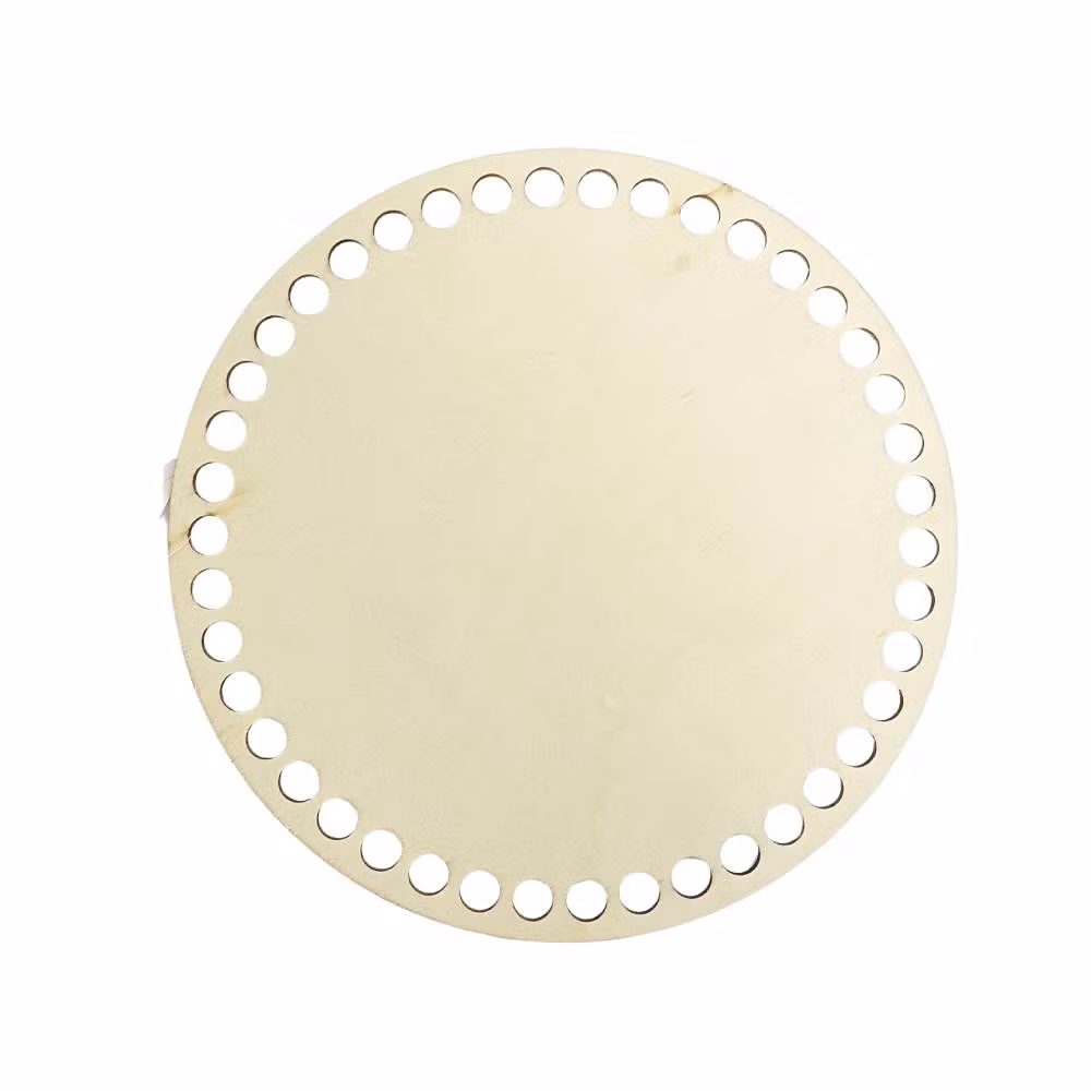 Botten passar till virkad korgar eller väskor. Trä får man måla eller lackera om man vill.